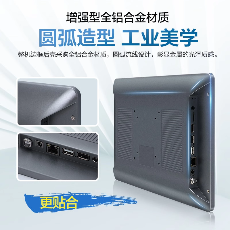 • 产品介绍: 1.全新结构设计,纯平纤薄,外观时尚 2.10点投射式电容触控技术,快速响应,精准稳定 3.通用型安装方式,可满足多种安装需求 4.独家私模开发,压铸一体成型 5.铝合金材质,散热更高效 6.贴合工艺,A规液晶,显示效果更佳